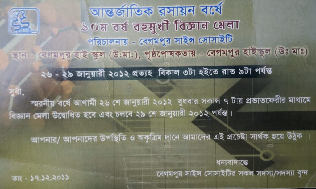 4th Multipurpose Science Fair Start Date : 02-02-2006 End Date : 06-02-2006 Time : 3:00 PM to 9:00 PM Venue : Begampur High School (H.S.) Organizer : Begampur Science Society Table of Contents Event Description The 4th MultiPurpose Science Fair in 2006 was an exceptional showcase of scientific innovation and creativity. This event brought together …